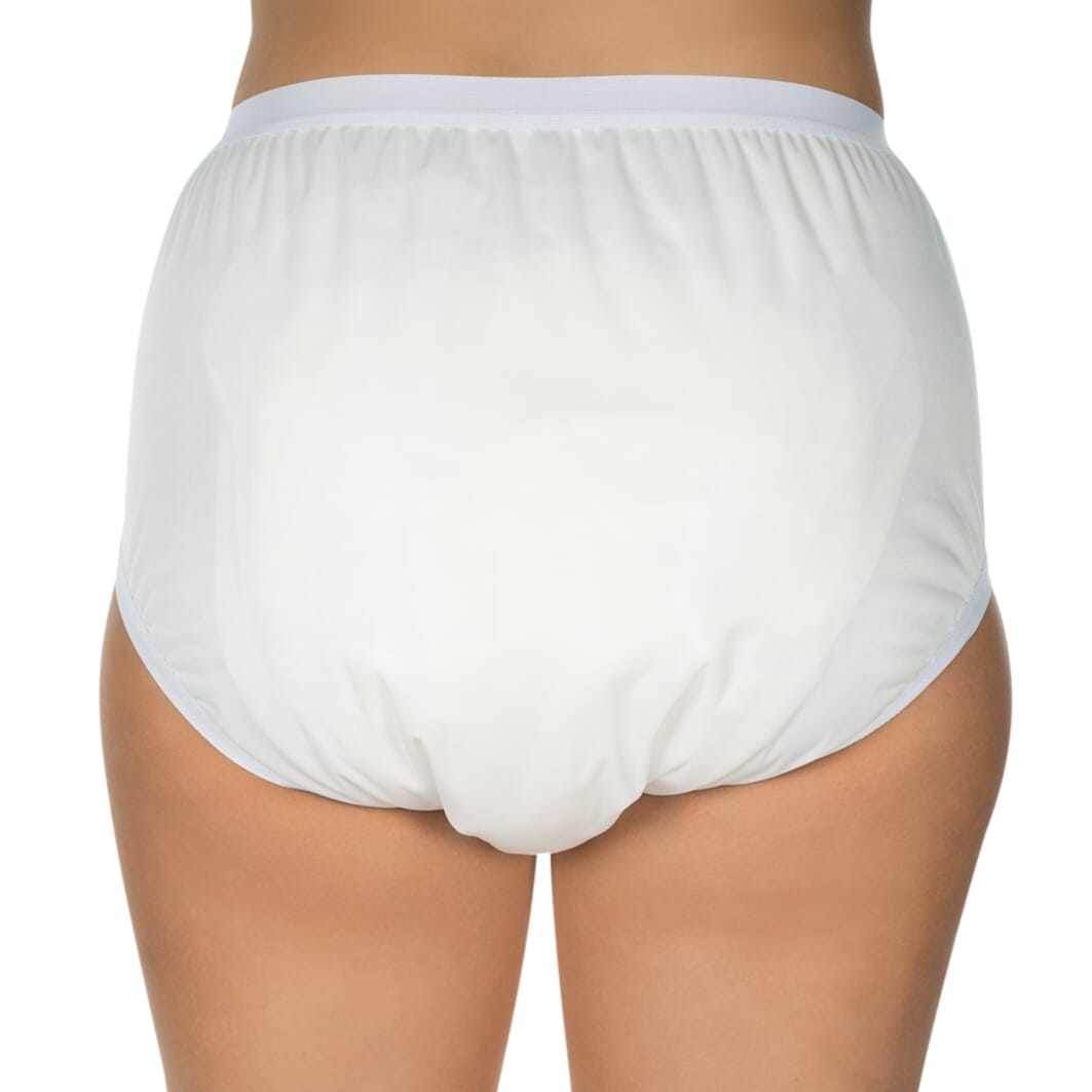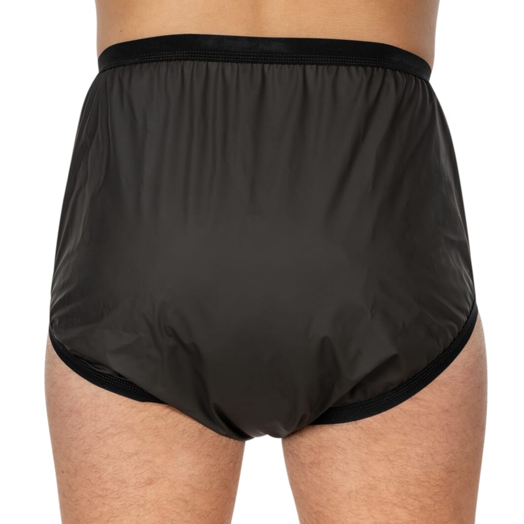 Polyuretan (PU) trusen fra Suprima fungerer som optimal beskyttelse ved tung urin- og avføringsinkontinens. Den kan enten brukes til fiksering av innleggsbleier eller som ekstra beskyttelse over pants- eller alt-i-ett bleier. Materialet polyuretan (PU) har unike egenskaper, fordi det urin-/ vanntett, elastisk og pustende. Beskyttelseslaget sørger for ekstra sikkerhet og hindrer videre lekkasjer fra bleien, ved aktivitet eller når man ligger. Det myke gummistrikket minimerer ytterligere faren for lekkasjer og bidrar, sammen med det tynne og glatte PU-materialet til at trusen er svært behagelig å ha på seg. Polyuretan (PU) trusen er meget slitesterk, kan vaskes på høye temperaturer og tåler tørketrommel.
