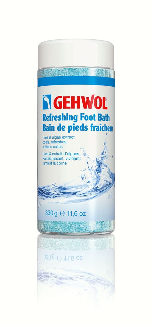 Gehwol Refreshing Foot Bath sørger for, og gir, en langvarig oppkvikkende følelse med kjølende menthol. Badet forebygger fotlukt og renser huden. Urea og alge gir masse fukt til huden og hjelper da huden med å holde huden myk og elastisk. Det er viktig for å forhindre sår og sprekker som kan gi grobunn for bakterier og virus.