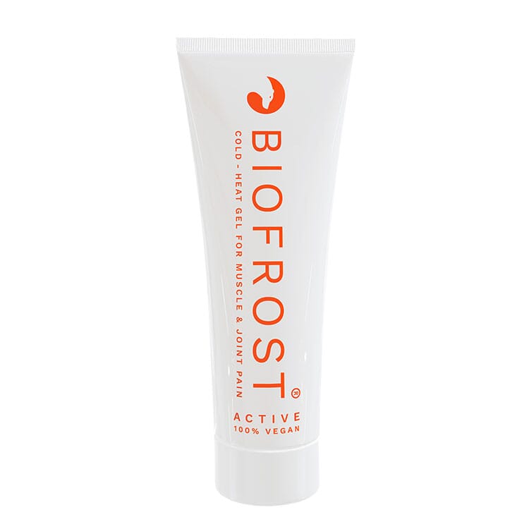 Etter fem minutter av høyt effektiv nedkjøling, aktiveres termoreseptoren TRPV, som leder til en oppfatning av temperaturforandring, og huden føles varm. Etter tjue minutter vil huden fortsatt være kjøligere enn før gelen ble påført området. Det er derfor BIOFROST® Active™ er en dual-action smertelindrende gel. BIOFROST® Active er verdens første krystallklare nedkjølende gel.